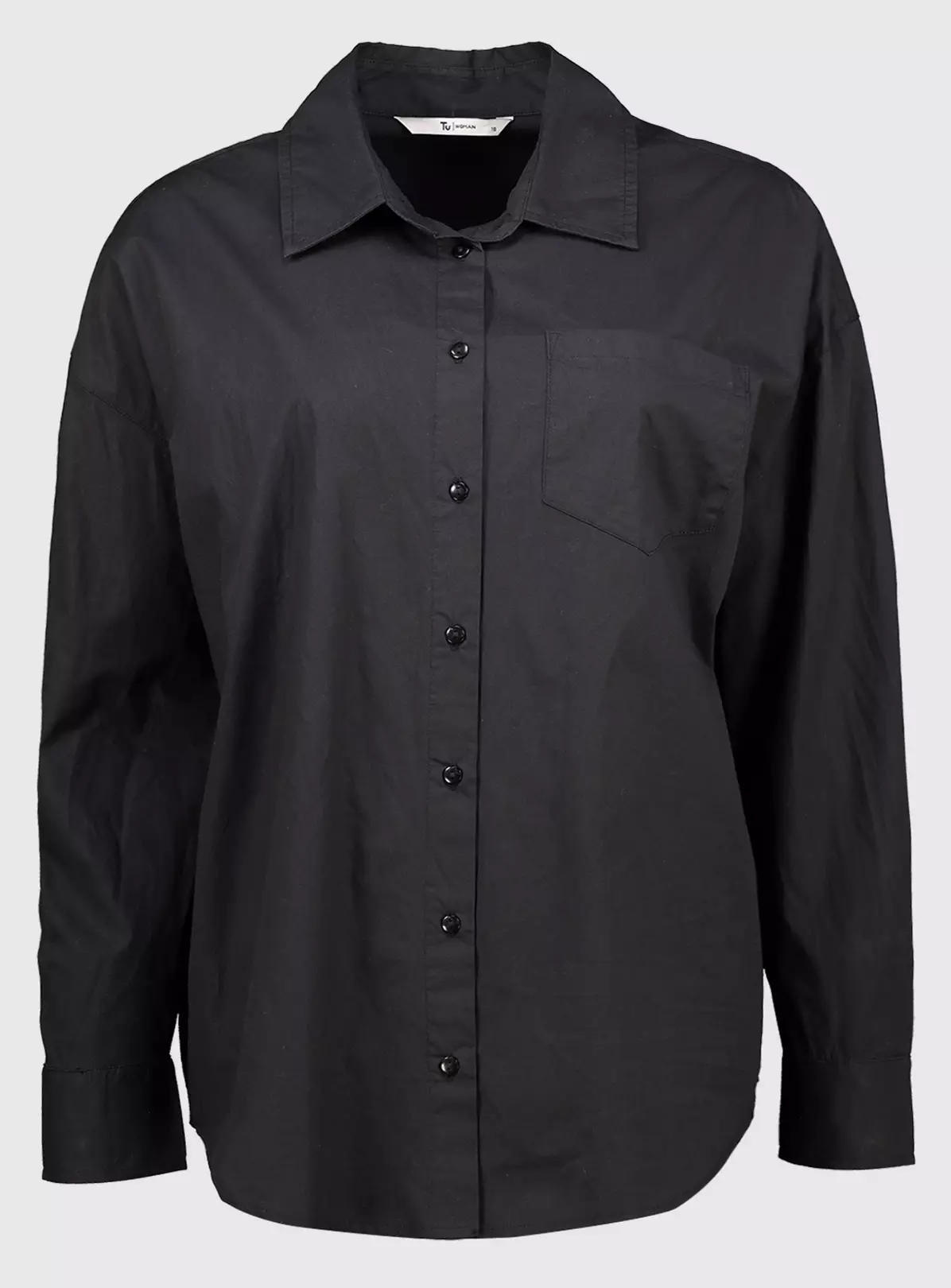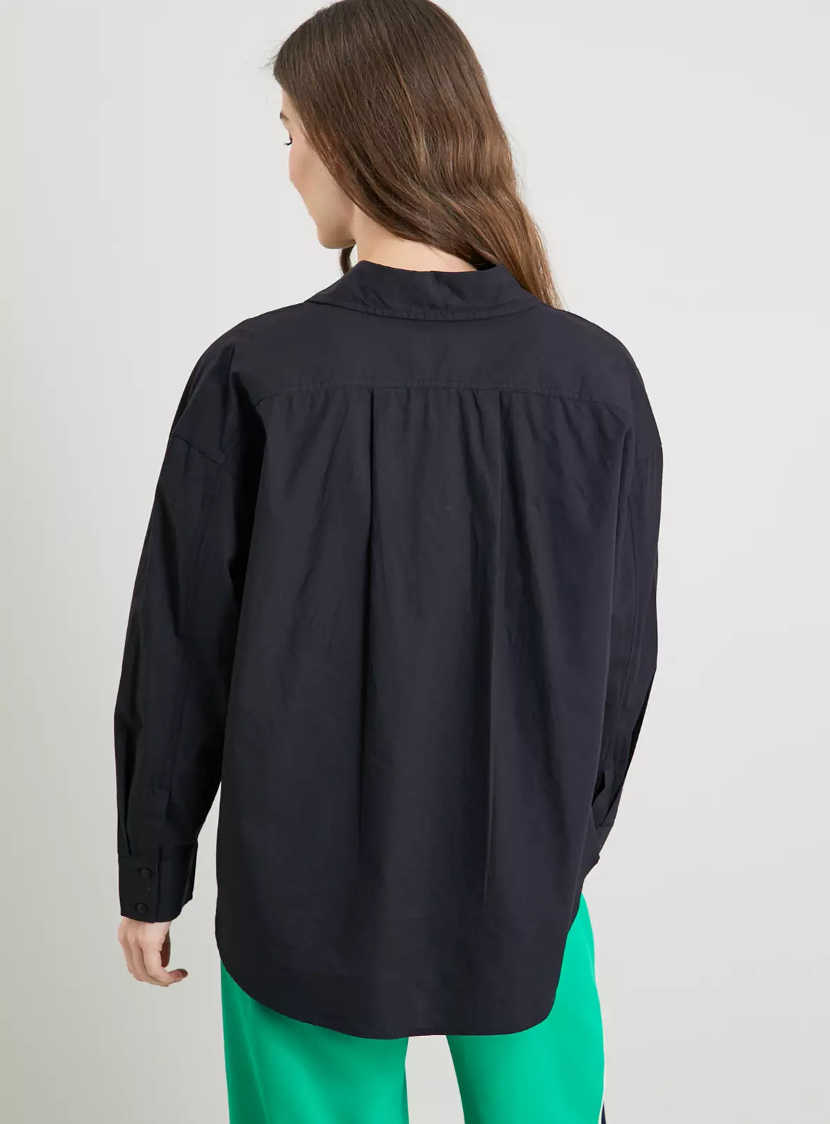 We all need a staple black shirt in our wardrobe, no questions asked! Cute, casual and versatile, we love the relaxed, oversized fit. Pair with denim shorts and sandals in the summer or mom jeans and trainers. Team with trousers or throw over your shoulders for spring vibes, you’ll reach for this poplin shirt time and time again! Made from pure cotton, it’s comfortable and breathable. Go on, add to your basket, you won’t regret it.